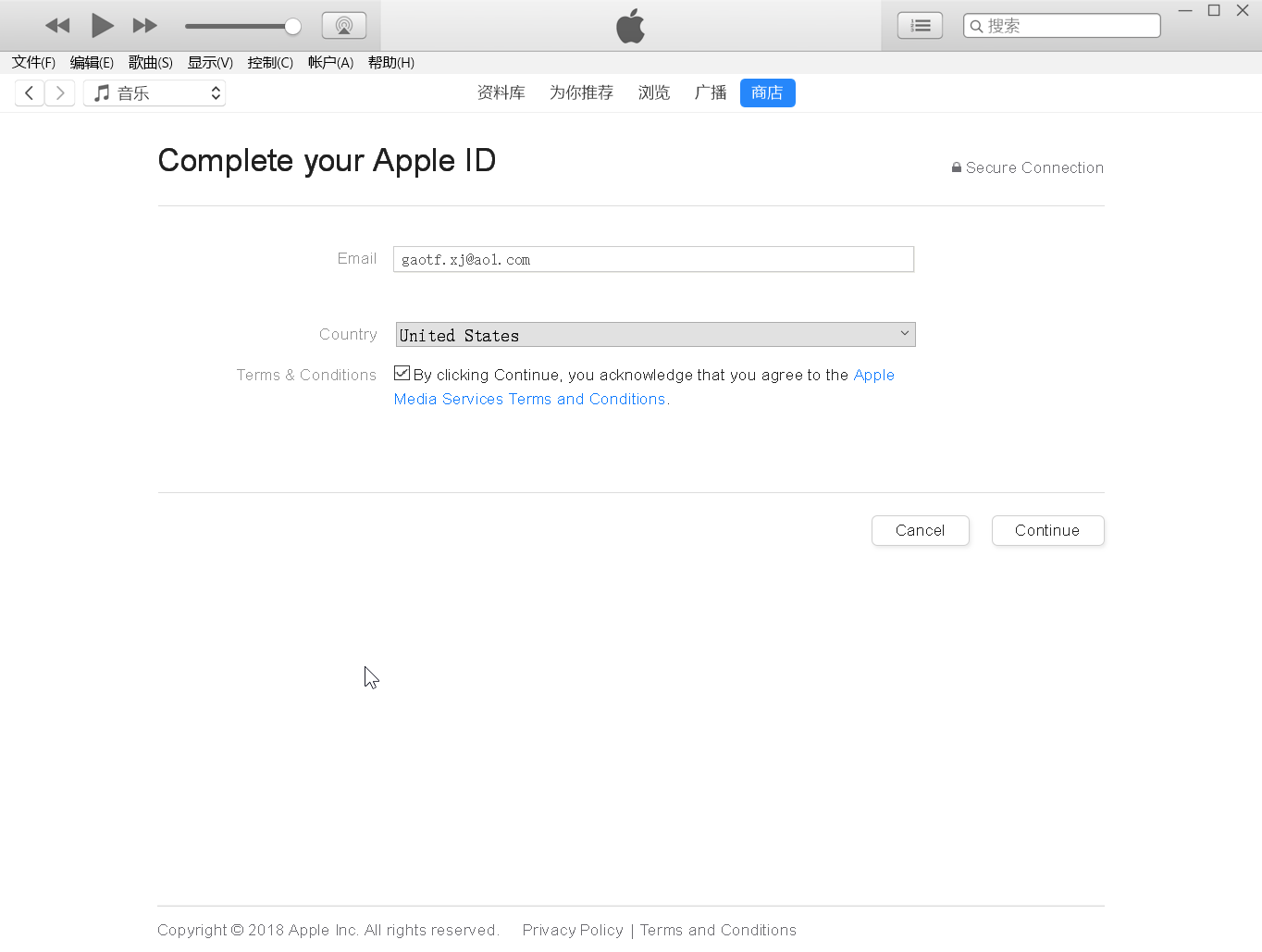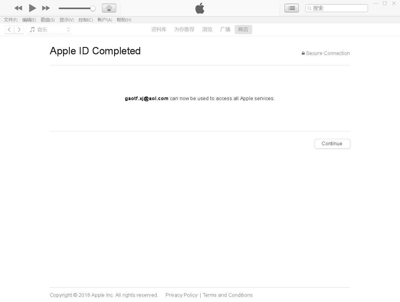 显示以下信息说明一个可以正常使用的Apple ID就创建成功了