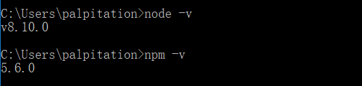 安装Node.js和配置好Node.js环境,打开cmd输入node -v和 npm -v配置成功界面如图