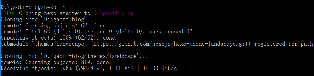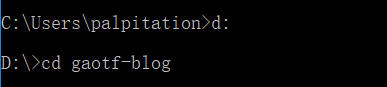根据个人喜好新建一个文件夹,我是在D盘新建了一个gaotf-blog文件夹(下文称此文件夹为yourblog)然后通过 命令行 进入到该文件夹里