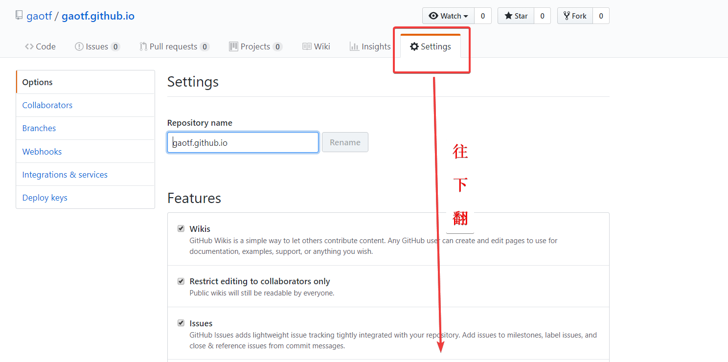 在建好的存储库右侧有个 settings 按钮,点击它,向下拉到GitHub Pages