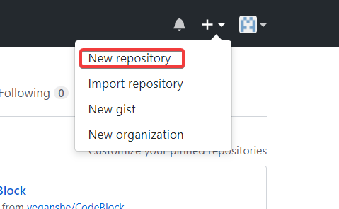 在GitHu个人主页的右上角 + -> new repository
