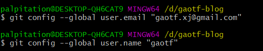 $ git config --global user.email "邮箱" # 注册GitHub时使用的邮箱