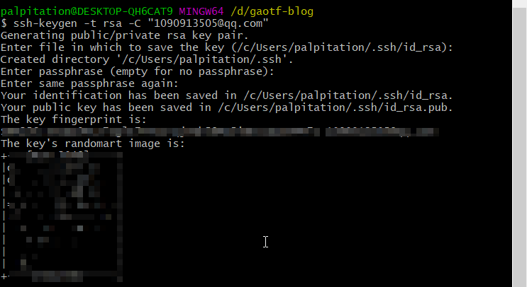 $ ssh-keygen -t rsa -C "邮箱"