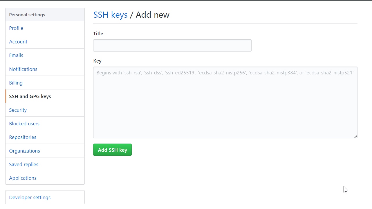 新建一个new ssh key 将剪贴板文件里的内容复制上去(ctrl+v)